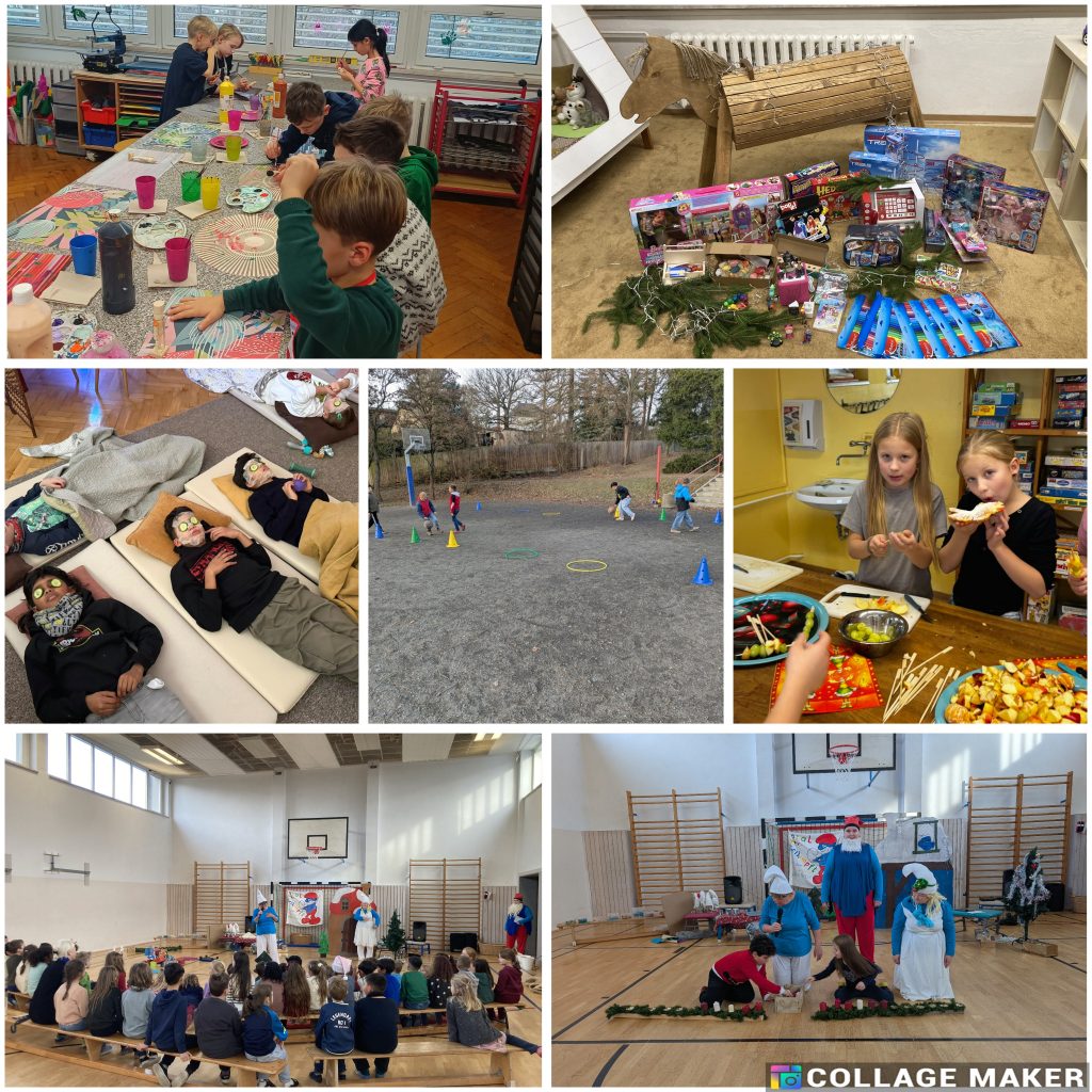Als kleine Überraschung gab es zum Einstieg für die Jungen und Mädchen der 3. und 4. Klassen den Kurzfilm „Weihnachten im Anflug“. Anschließend teilten sich die Kinder auf verschiedene Stationen auf, um den Nachmittag gemeinsam zu verbringen. Im Garten und Holzraum fanden weihnachtliche Partyspiele statt, in der Oase konnten sie Märchen lauschen und dabei entspannen, im Kreativraum wurden in der Wichtelwerkstatt Nussknacker bemalt und im Spielezimmer wurden Leckereien, wie Waffeln und Crunch hergestellt.